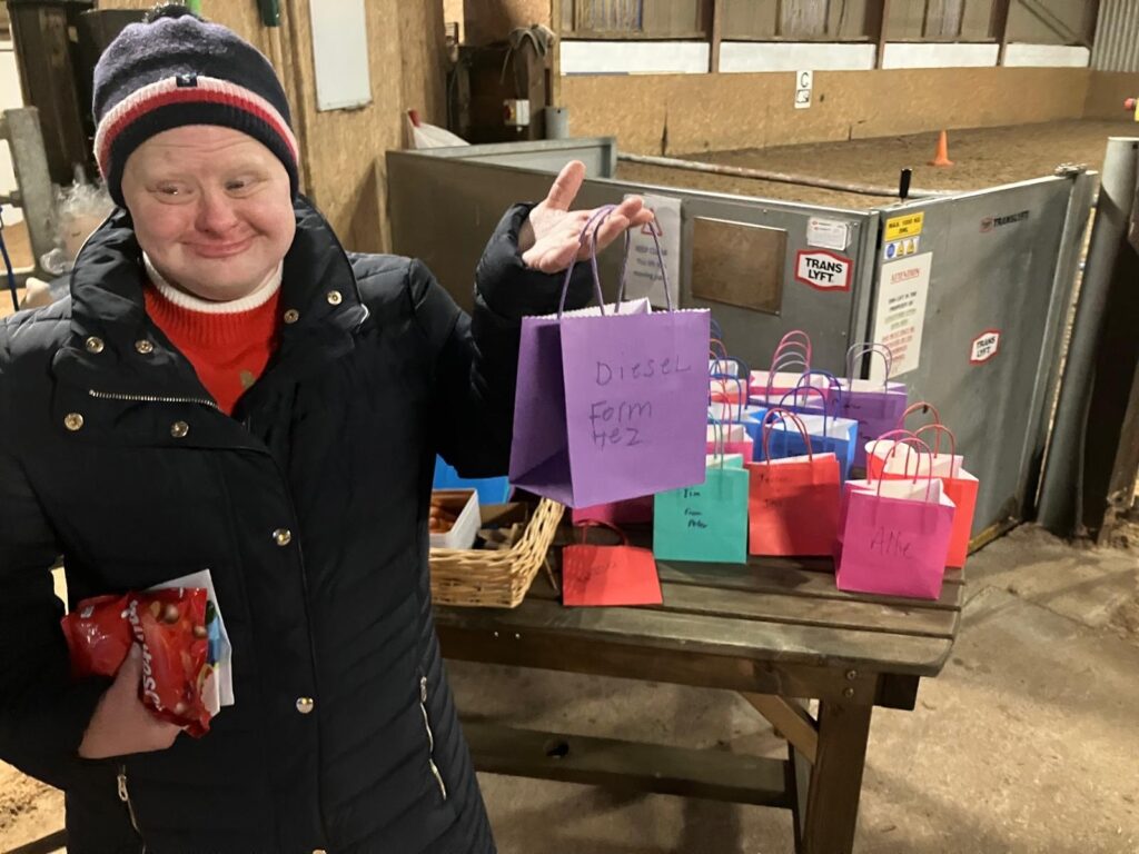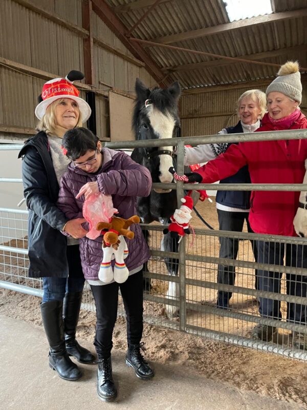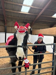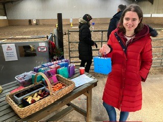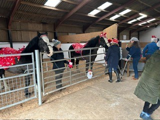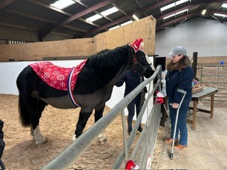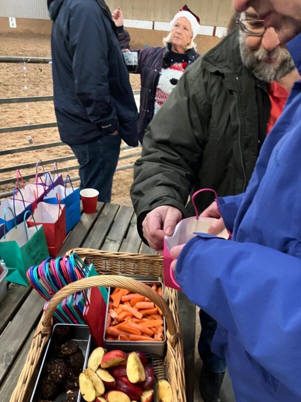 Christmas hats and jumpers were in abundance at our Christmas party. As well as riders, PA’s, families and volunteers who came to celebrate, we were delighted to welcome along others who support our group in so many other ways, Our rider sponsors and donators who have supported us financially, our vets and saddler who ensure our ponies are kept in tip top condition and those who have maintained and have improved our facilities. Thanks to everyone’s collective efforts, we’ve come a long way since taking on the yard a year ago. Our riders loved making up little Christmas gift bags for their ponies. A lovely way to start the Christmas festivities!